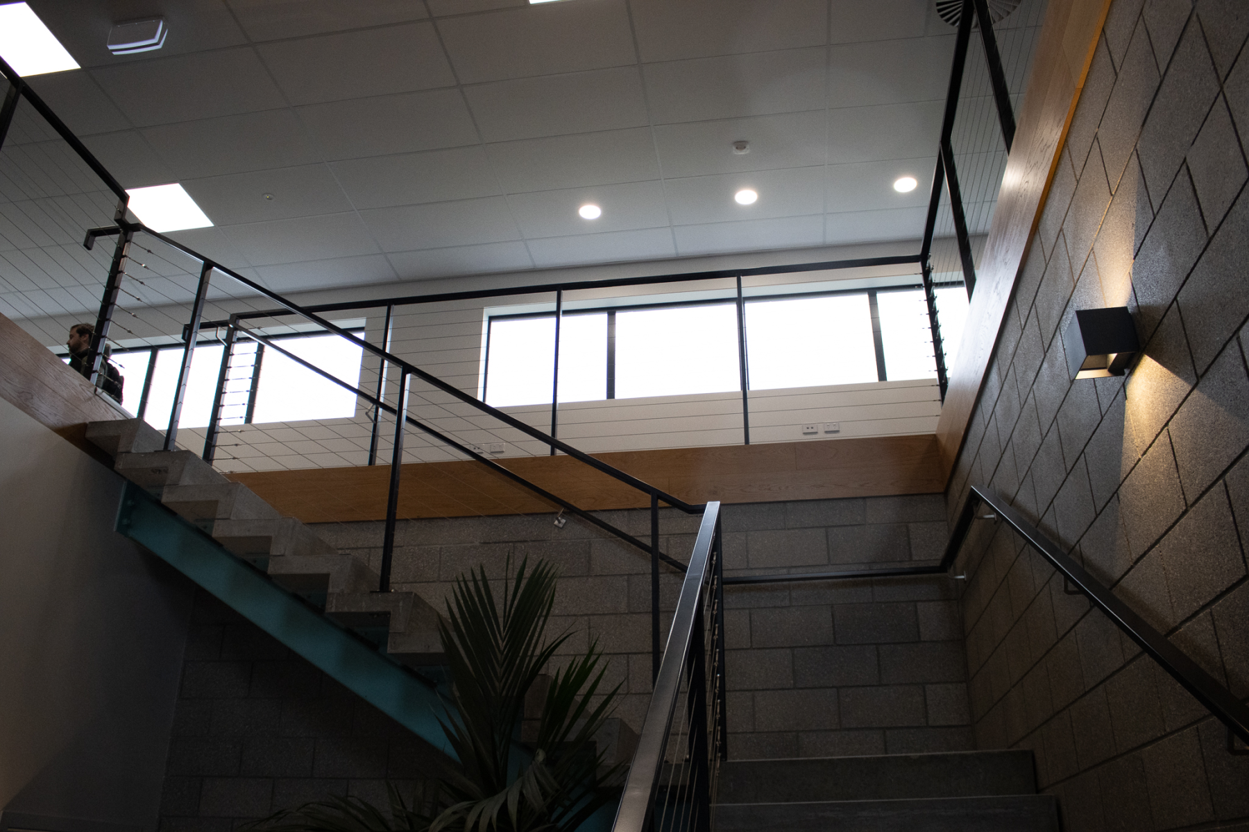 The top floor includes a full perimeter of orange sun fins to add a unique and modern look to the building, while providing some shade from the morning sun.